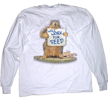 Will Work for Seed Long Sleeve T-shirt | Funny Squirrel